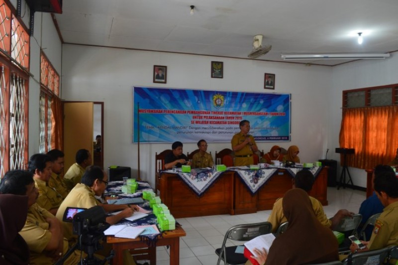 Camat Singorojo Toni Ari Wibowo, AP., MM. melalui Sekretaris Kecamatan melaporkan, musrenbang kecamatan didahului dengan pelaksanaan musrenbang desa se-Kecamatan Singorojo yakni Desa Cening, Sukodadi, Kaliputih, Getas, Banyuringin, Kedungsari, Ngareanak, Singorojo, Cacaban, Kalirejo, Merbuh, Trayu dan Kertosari. Tujuan musrenbang ini adalah menyikapi permasalahan pembangunan daerah, menyikapi prioritas pembangunan daerah, menyepakati program, kegiatan, pagu indikatif, indikator dan target kinerja serta lokasi, penyelarasan program dan kegiatan pembangunan daerah dengan sasaran dan prioritas pembangunan provinsi dan klarifikasi program dan kegiatan yang merupakan kewenangan daerah kabupaten/kota dengan program dan kegiatan desa yang diusulkan berdasarkan hasil musrenbang kecamatan.
