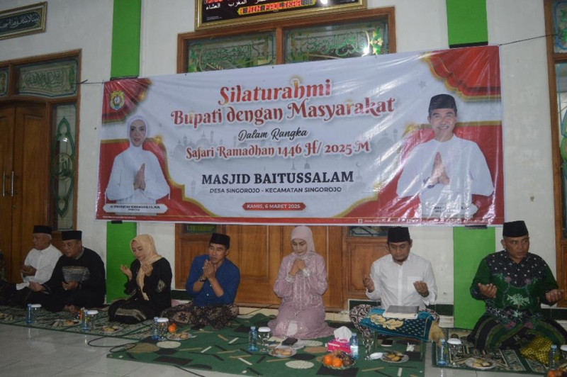 SINGOROJO - Forkompincam, Aparatur Sipil Negara, Perangkat Desa, Ormas, Seluruh Lapisan Masyarakat Kecamatan Singorojo dan sekitarnya menghadiri Acara Silaturahmi Bupati dengan Masyarakat dalam rangka "Safari Ramadhan 1446 H", di Masjid Baitussalam Kecamatan Singorojo Kabupaten Kendal, Kamis (06/03) sore.